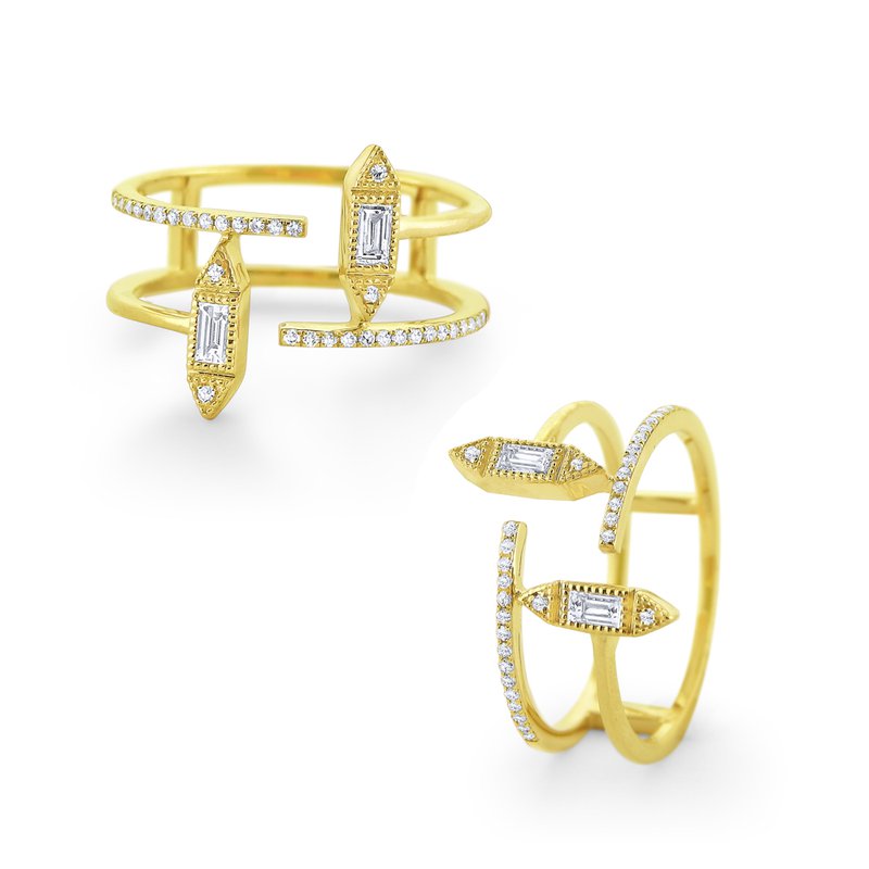 Double Diamond Band with Art Deco Details Set in 14 Kt. Gold