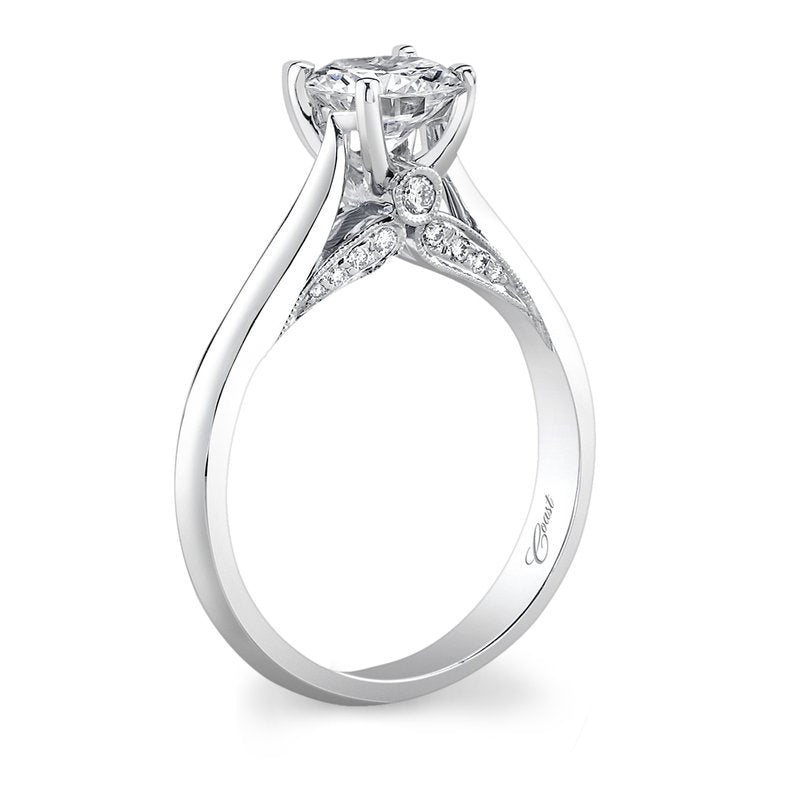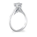 Pave diamond details add a touch of refinement to this classic solitaire engagement ring. Standard size created for a 1 ct center stone.