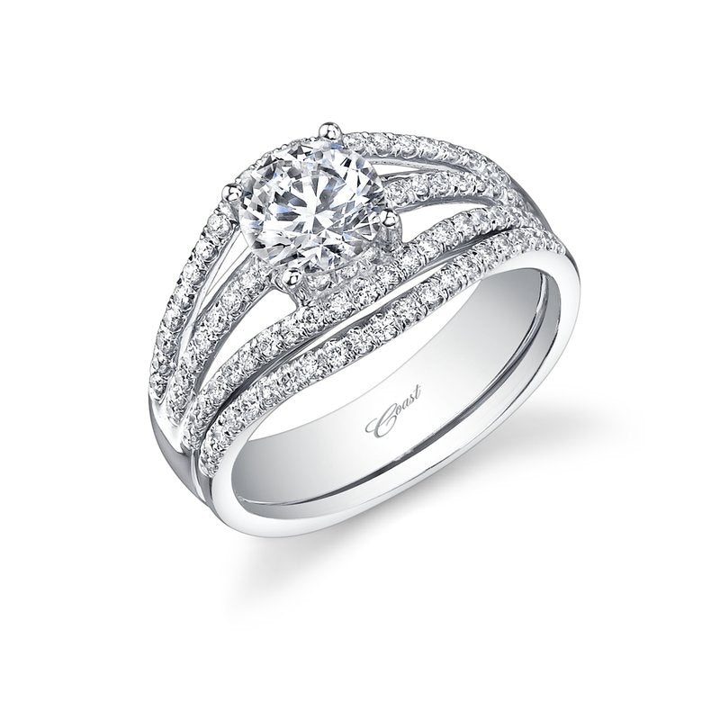 This contemporary style features a three-row split shank adorned with round brilliant diamonds. Band sold separately.