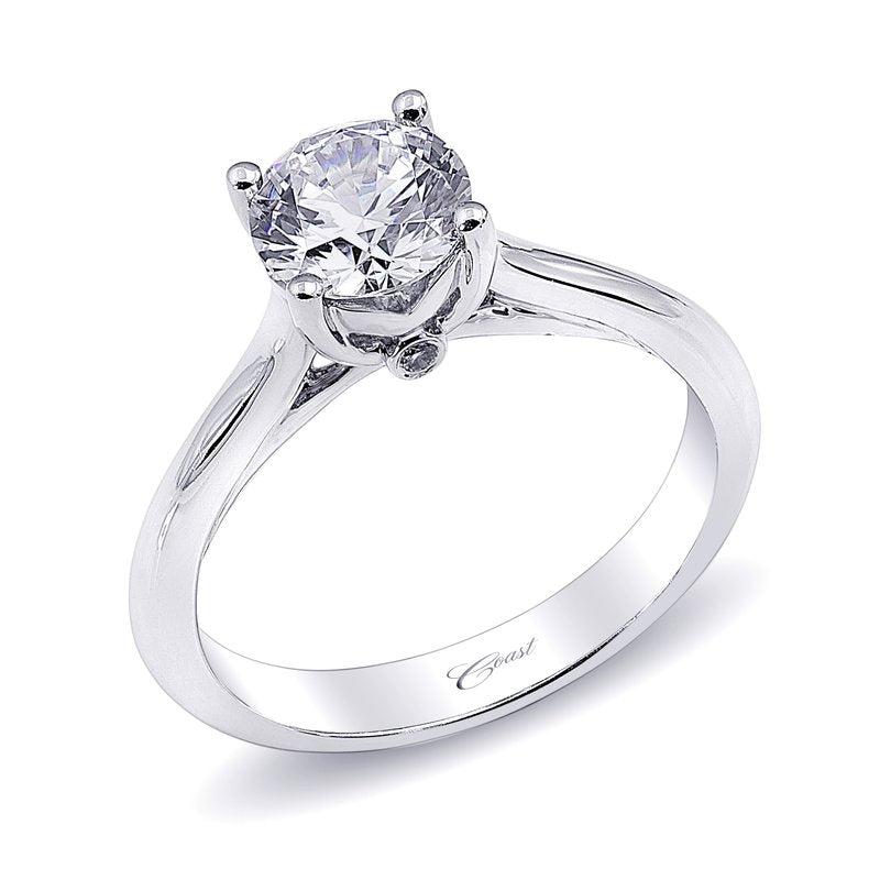 A beautiful solitaire engagement ring built for a 1 ct center stone. A peek-a-boo diamond on the side of the head adds a touch of sparkle.
