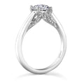 Ribbons of pave set diamonds add an exciting accent to this solitaire design.