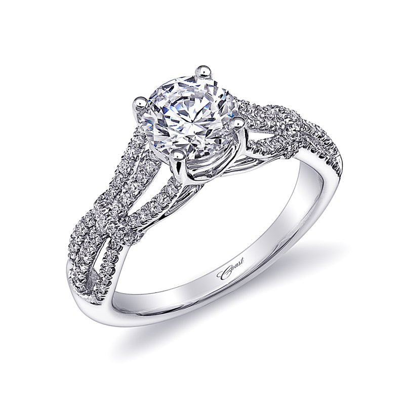 Like a special gift tied with a bow, this engagement ring features diamonds which gracefully drape around the finger. Shown with a 1 ct center stone.