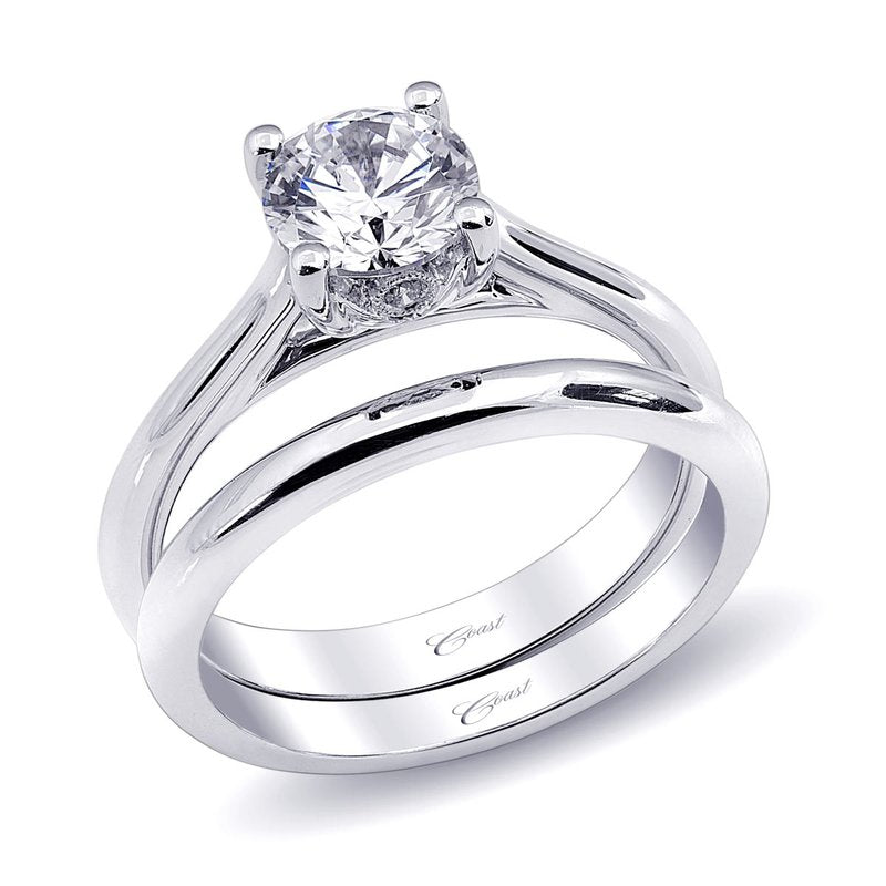 This timeless and romantic solitaire ring is the perfect symbol for your love. A hidden diamond adds a touch of sparkle to the side view. Built to hold a 1 ct round center diamond. Band sold separately.