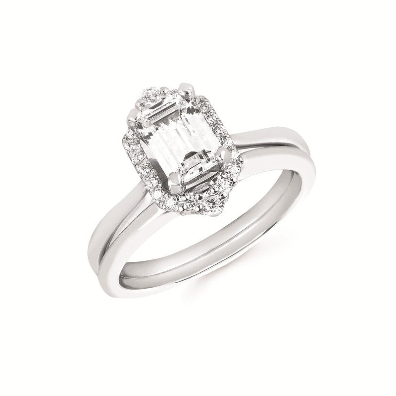 Forever Elegant™ 1/6 Ctw. Diamond Semi Mount shown with 1 Ct. Emerald Cut Center Diamond in 14K Gold