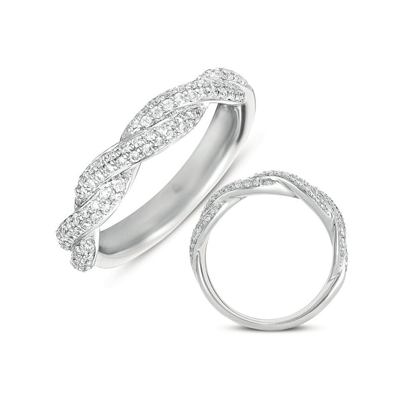 This Band is available in 14K White Gold. There are a total of 94 stones. There are Rounds with a total carat weight of 0.38 set in a Micro Pave setting.None