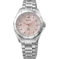 Prospex Sea Series. Designed for those who treat life as the ultimate adventure, the Seiko Prospex line meets every challenge with technological excellence and style. Taking on a sporty, yet refined impression, this beautiful series, created with a sleek profile and proportions specially tailored for a sophisticated look, features both enhanced water-resistance for marine adventures and an elegance suited for finer occasions. An extraordinary blend of form and function, the impressive timepiece displays a pale pink sunray finish dial with rose gold-tone accents and LumiBrite hands for superior visibility in low-light conditions, topped with a scratch-resistant sapphire crystal with anti-reflective coating on the inner surface. Crafted of stainless steel with a high polish multi-faceted bezel catching the light from multiple directions, this versatile watch is designed with a built-in crown protector, a tri-fold push button release clasp, and a secure screwdown caseback. 20 bar, 200M Water Resistant