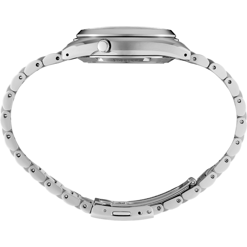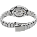 Show your style. Make your move. For over 50 years, Seiko 5 Sports has delivered consistently high levels of reliability, durability, and performance. Inspired by the best-selling SNXS series from the classic Seiko 5 collection of the past, this exceptional watch offers a compact case and bracelet design incorporating iconic elements of the original models with upgraded performance for today. Providing automatic technology that you control with every movement, this dynamic timepiece is powered by a 24-jewel movement that beats at a frequency of 21,600 vibrations per hour, with a power reserve of approximately 41 hours and manual winding capability. Framed by a metallic minute track, the deep black dial features diamond cut indices with grooved top surfaces, a day/date calendar, and LumiBrite coating on the hands and markers for enhanced visibility in low-light conditions. Crafted of stainless steel with hairline and mirror finish, the sharply designed case has a low center of gravity for a comfortable fit and features a screwdown see-through caseback for a view of classic timekeeping in action, flowing seamlessly to a stainless steel bracelet with a tri-fold push button release clasp. 10 bar, 100M Water Resistant