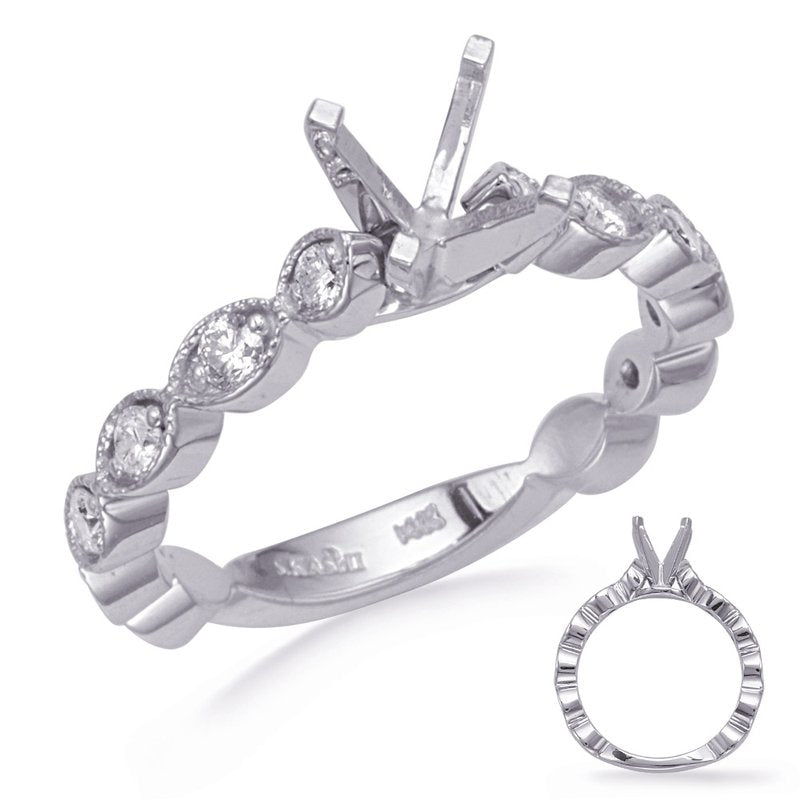 This Engagement ring is available in 14K White Gold. There are a total of 10 stones. There are Rounds with a total carat weight of 0.41 set in a Prong Set setting.None