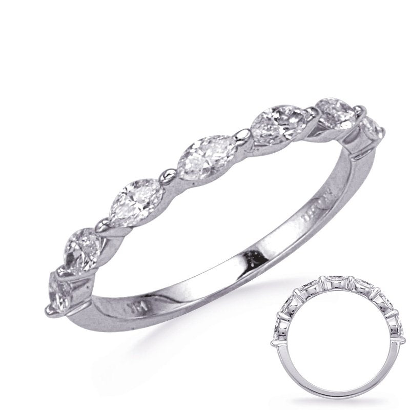 This Band is available in 14K White Gold. There are a total of 7 stones. There are Marquise with a total carat weight of 0.56 set in a Prong Set setting.