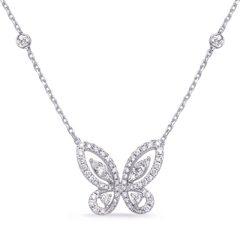 This necklace is available in 14K White Gold. There are a total of 66 stones. There are Rounds with a total carat weight of 0.65 set in a Bezel Set|Micro Pave setting.None