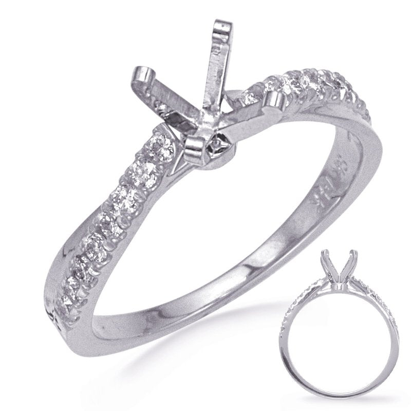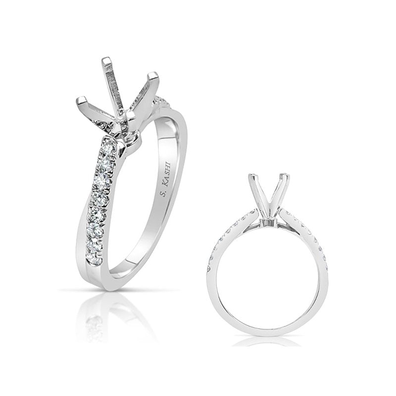 This Engagement ring is available in 14K White Gold. There are a total of 16 stones. There are Rounds with a total carat weight of 0.26 set in a Micro Prong setting.None