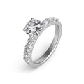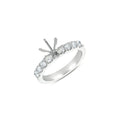 This Engagement Ring is available in 14K White Gold. There are a total of 8 stones. There are Rounds with a total carat weight of 0.58 set in a Prong Set setting.