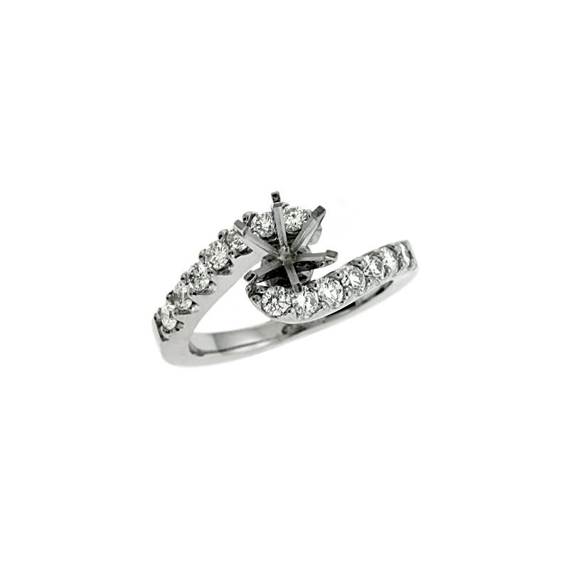This Engagement Ring is available in 14K White Gold. There are a total of 14 stones. There are Rounds with a total carat weight of 0.69 set in a Prong Set setting.