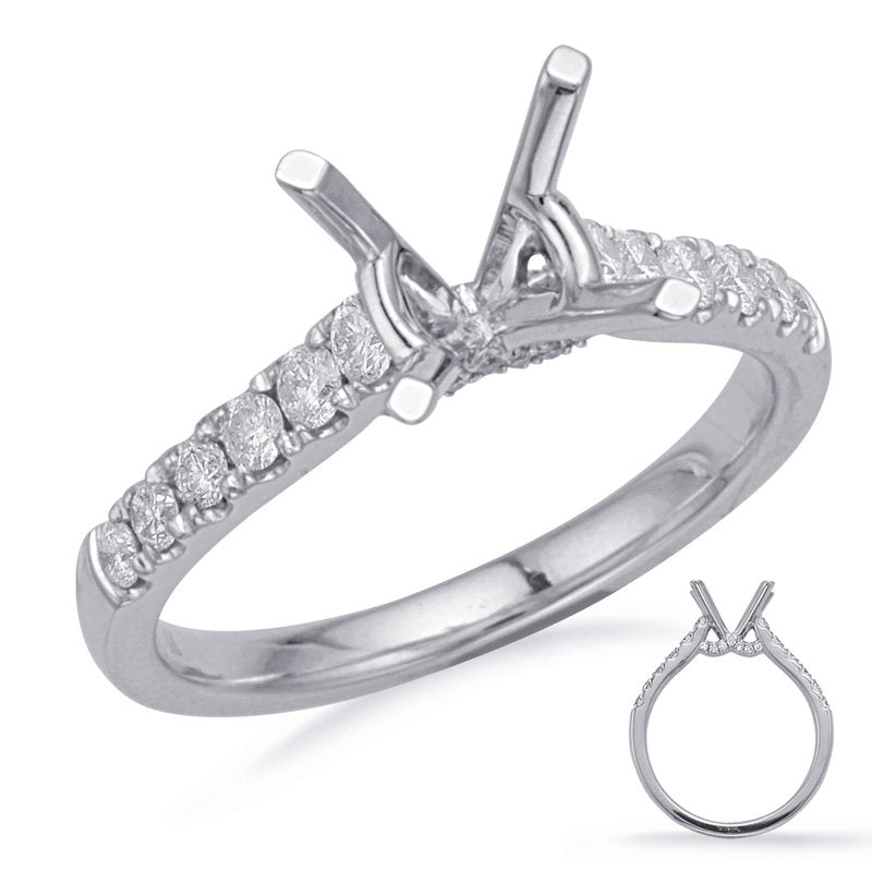 This Engagement Ring is available in 14K White Gold. There are a total of 26 stones. There are Rounds with a total carat weight of 0.41 set in a Micro Prong setting.