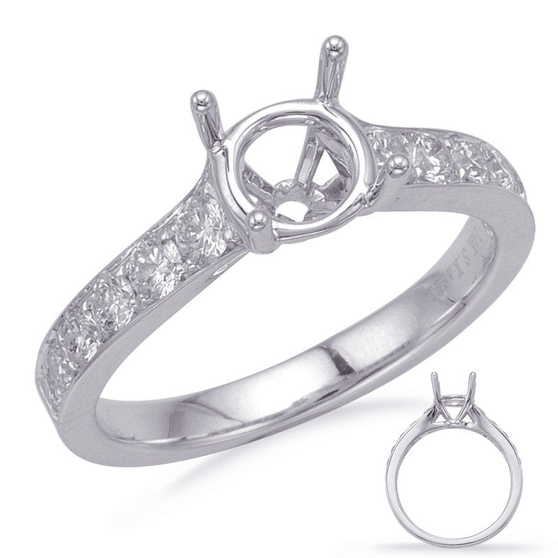 This Engagement ring is available in 14K White Gold. There are a total of 12 stones. There are Rounds with a total carat weight of 0.55 set in a Channel Set|Micro Prong|Prong Set setting.None
