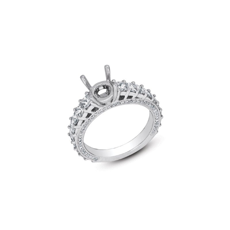 This Engagement ring is available in 14K White Gold. There are a total of 108 stones. There are Princess with a total carat weight of 1.67 set in a Micro Pave|Prong Set setting.None