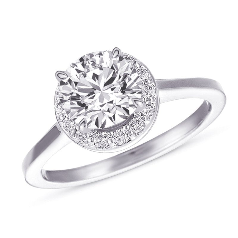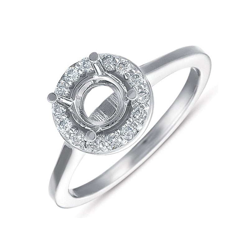 This Engagement Ring is available in 14K White Gold. There are a total of 14 stones. There are Rounds with a total carat weight of 0.21 set in a Prong Set setting.