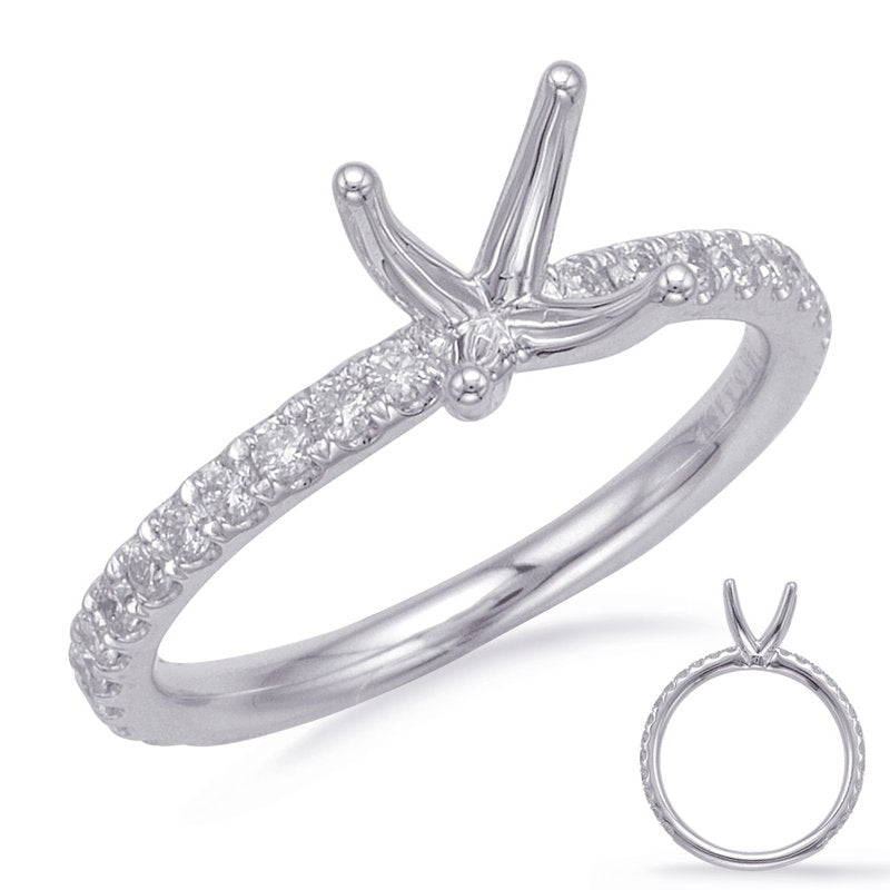 This Engagement Ring is available in 14K White Gold. There are a total of 26 stones. There are Rounds with a total carat weight of 0.48 set in a Micro Prong setting.