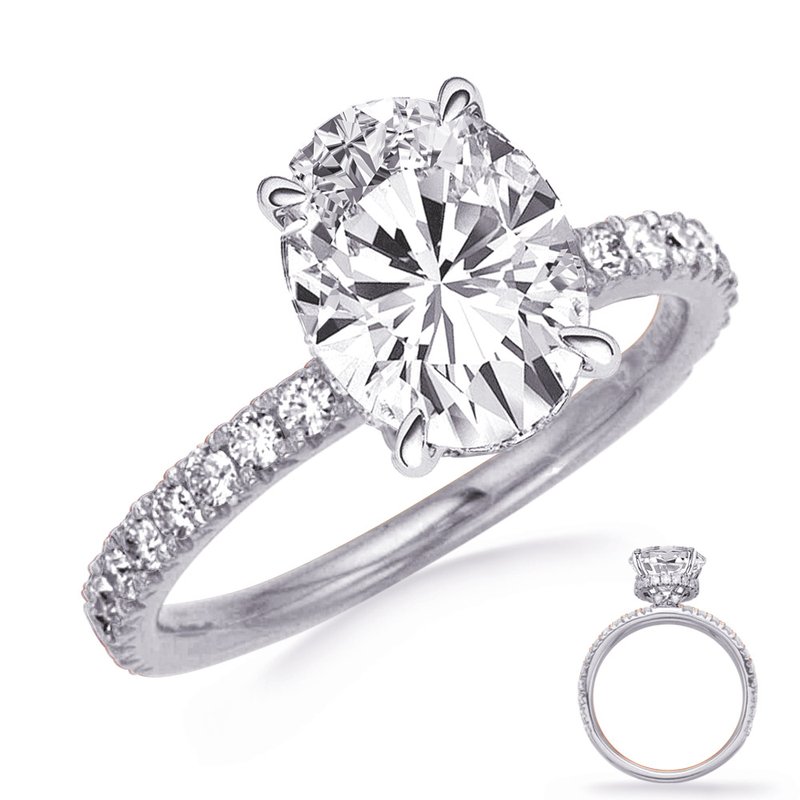 This Engagement Ring is available in 14K White Gold. There are a total of 46 stones. There are Rounds with a total carat weight of 0.54 set in a Micro Prong setting.