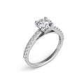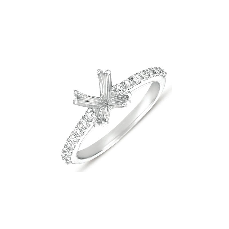 This Engagement Ring is available in 14K White Gold. There are a total of 16 stones. There are Rounds with a total carat weight of 0.35 set in a Micro Prong setting.