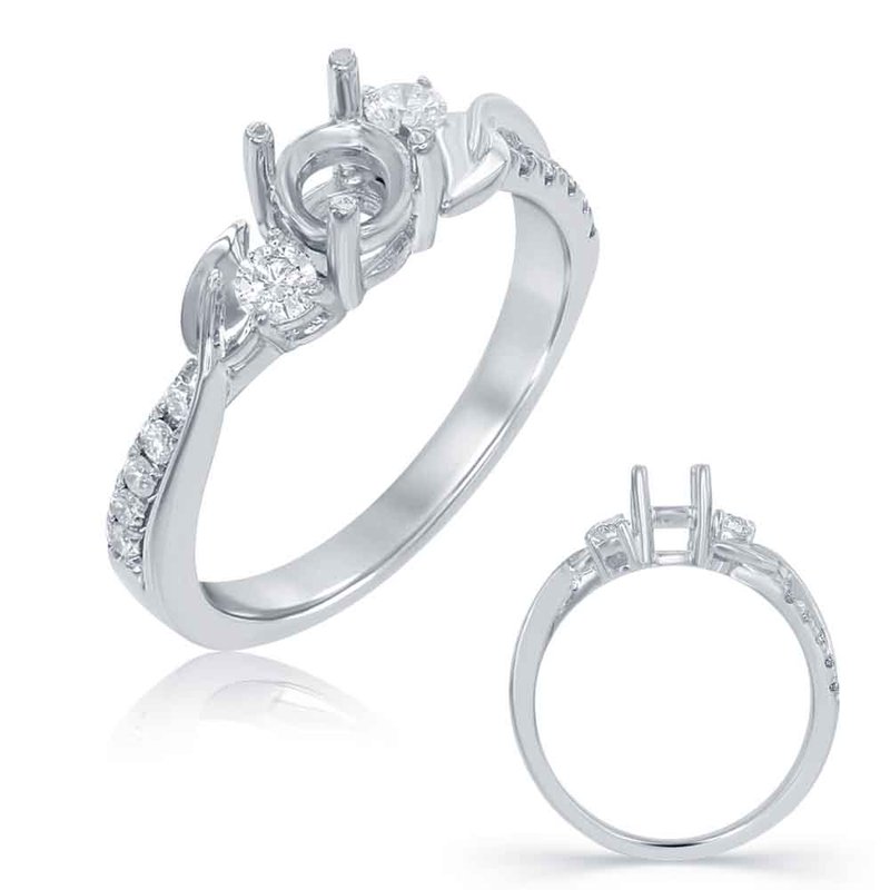 This Engagement Ring is available in 14K White Gold. There are a total of 12 stones. There are Rounds with a total carat weight of 0.25 set in a Micro Prong|Prong Set setting.