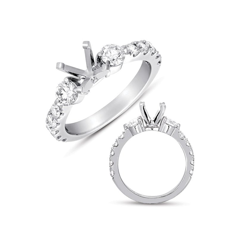 This Engagement Ring is available in 14K White Gold. There are a total of 12 stones. There are Rounds with a total carat weight of 1.04 set in a Prong Set setting.