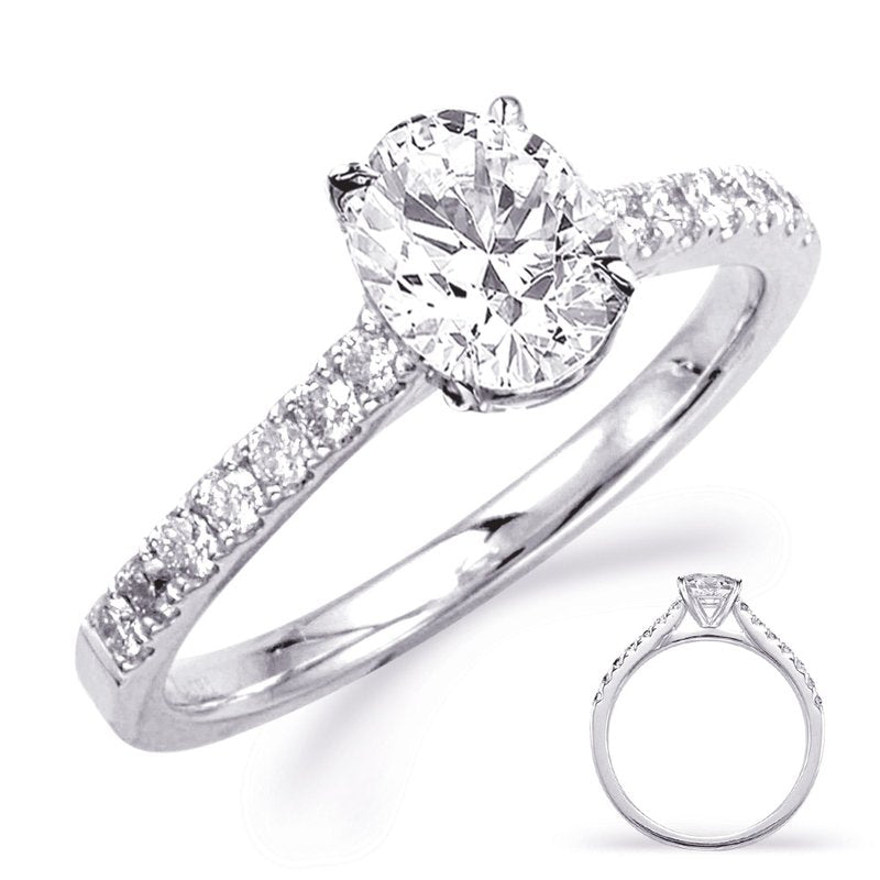 This Engagement Ring is available in 14K White Gold. There are a total of 14 stones. There are Rounds with a total carat weight of 0.22 set in a Micro Prong setting.