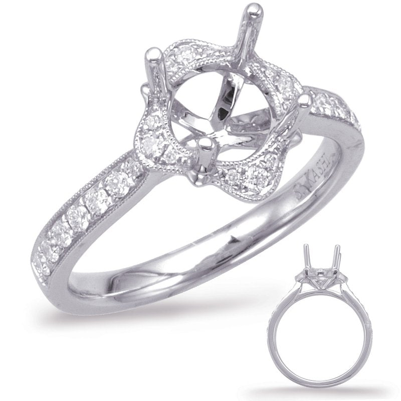 This Engagement ring is available in 14K White Gold. There are a total of 26 stones. There are Rounds with a total carat weight of 0.25 set in a Micro Prong setting.None