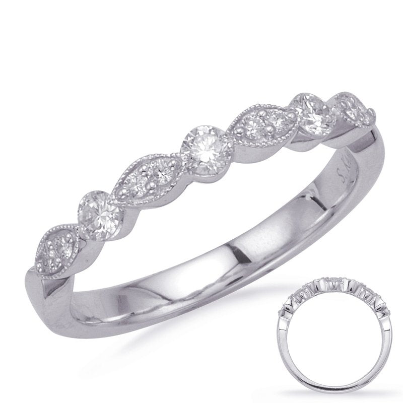 This Band is available in 14K White Gold. There are a total of 11 stones. There are Rounds with a total carat weight of 0.26 set in a Micro Prong|Prong Set|Shared Prongs setting.None