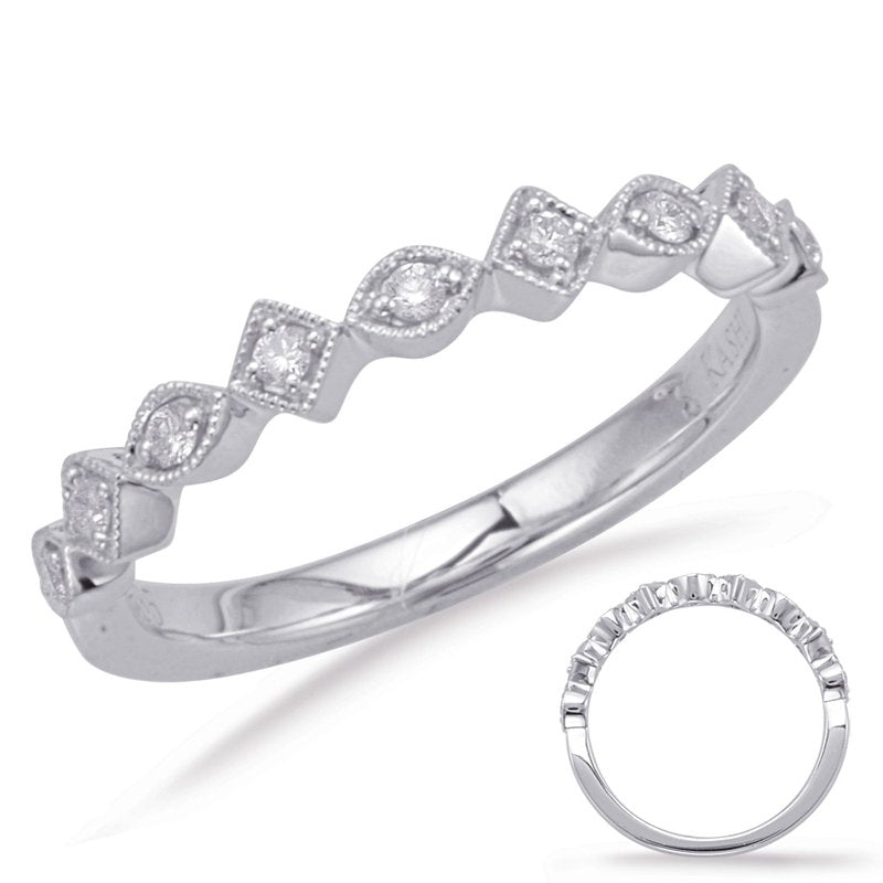 This Band is available in 14K White Gold. There are a total of 9 stones. There are Rounds with a total carat weight of 0.11 set in a Micro Prong setting.None