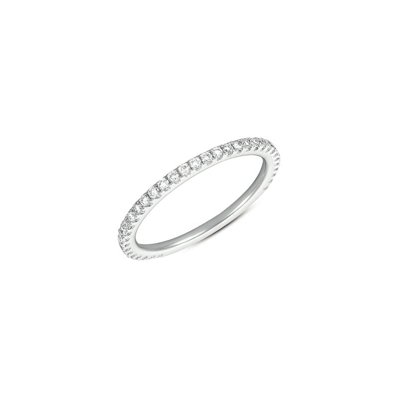 This Band is available in 14K White Gold. There are a total of 35 stones. There are Rounds with a total carat weight of 0.3 set in a setting.None