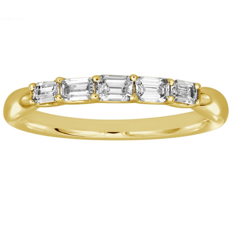 This Fashion Ring is available in 14K Yellow Gold. There are a total of 5 stones. There are Emerald Cut with a total carat weight of 0.49 set in a Prong Set setting.