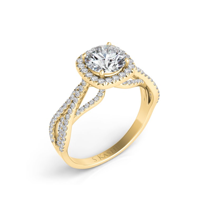 This Engagement ring is available in 14K Yellow Gold. There are a total of 120 stones. There are Rounds with a total carat weight of 0.51 set in a Micro Prong setting.There are stones with a total carat weight of 0 set in a Micro Prong.None