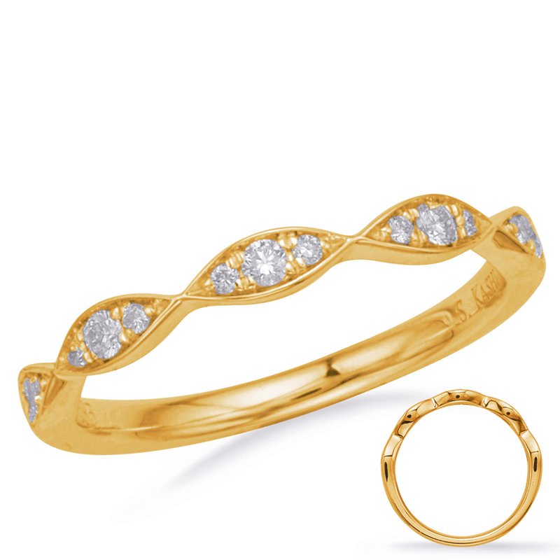 This Band is available in 14K Yellow Gold. There are a total of 13 stones. There are Rounds with a total carat weight of 0.17 set in a Micro Prong setting.None