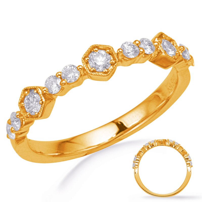 This Band is available in 14K Yellow Gold. There are a total of 11 stones. There are Rounds with a total carat weight of 0.33 set in a Micro Prong|Prong Set|Shared Prongs setting.None